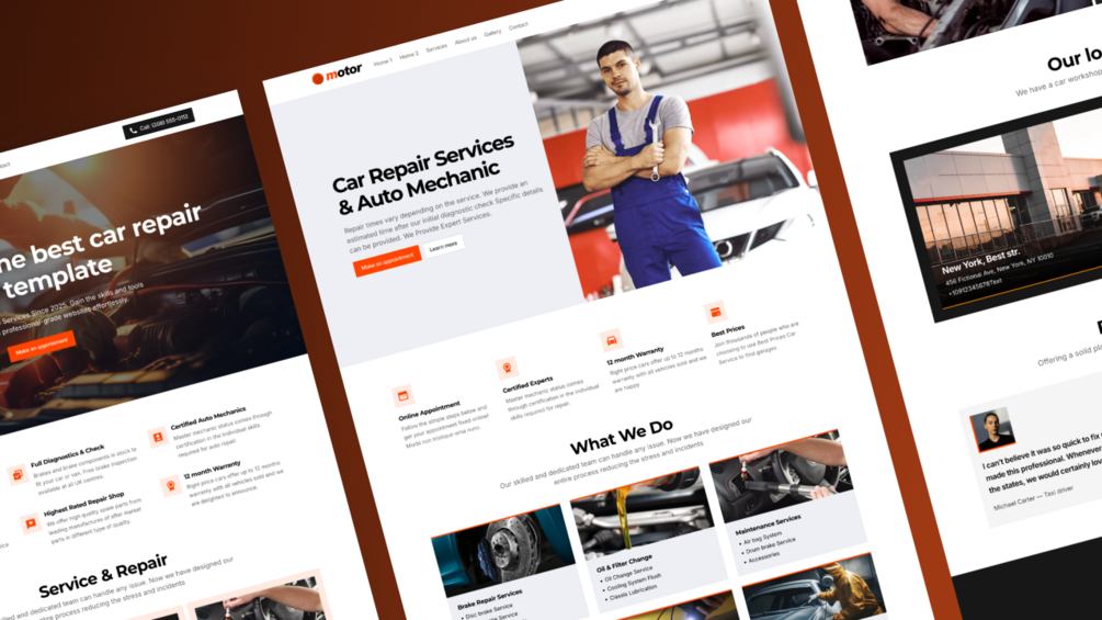 Motor is a modern auto repair website template made for automotive services and car repair shops. It offers sleek layouts, fast performance with user-friendly interface. It is a responsive template designed for auto repair and car service businesses.